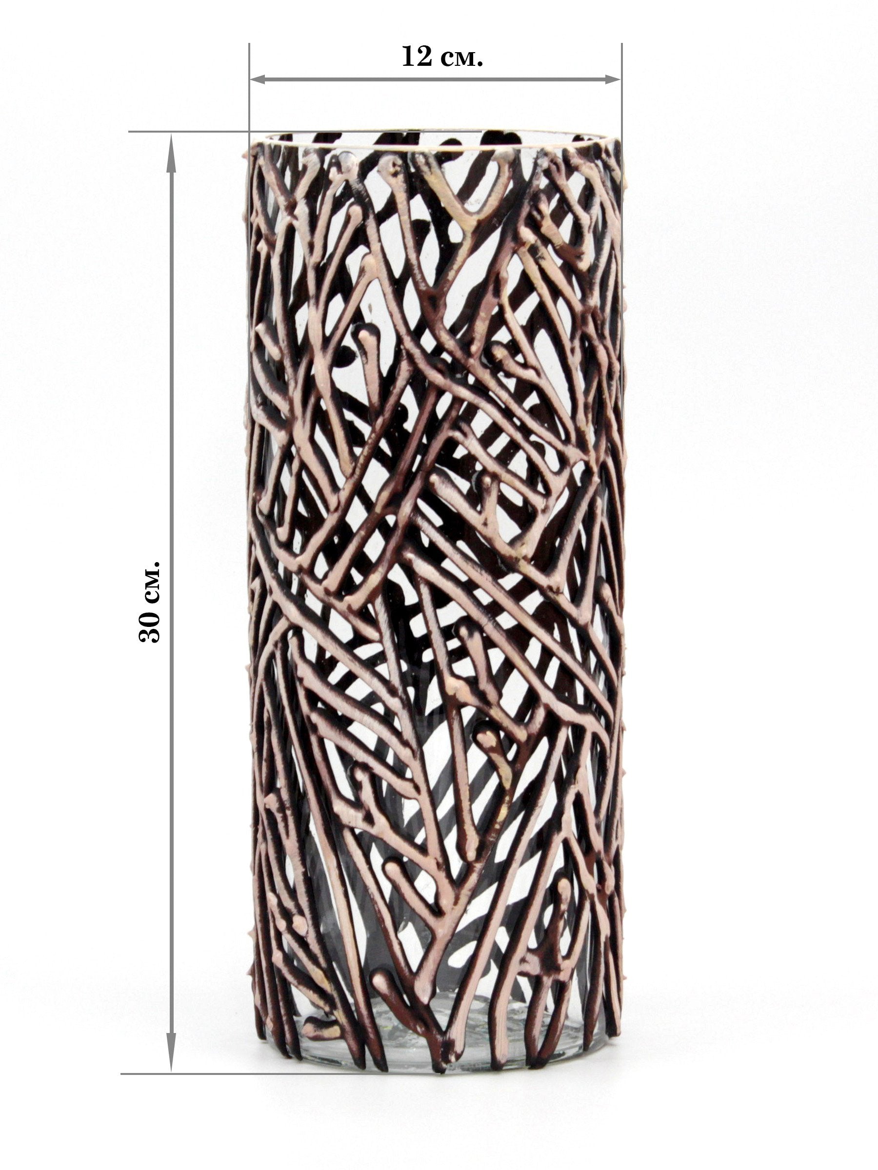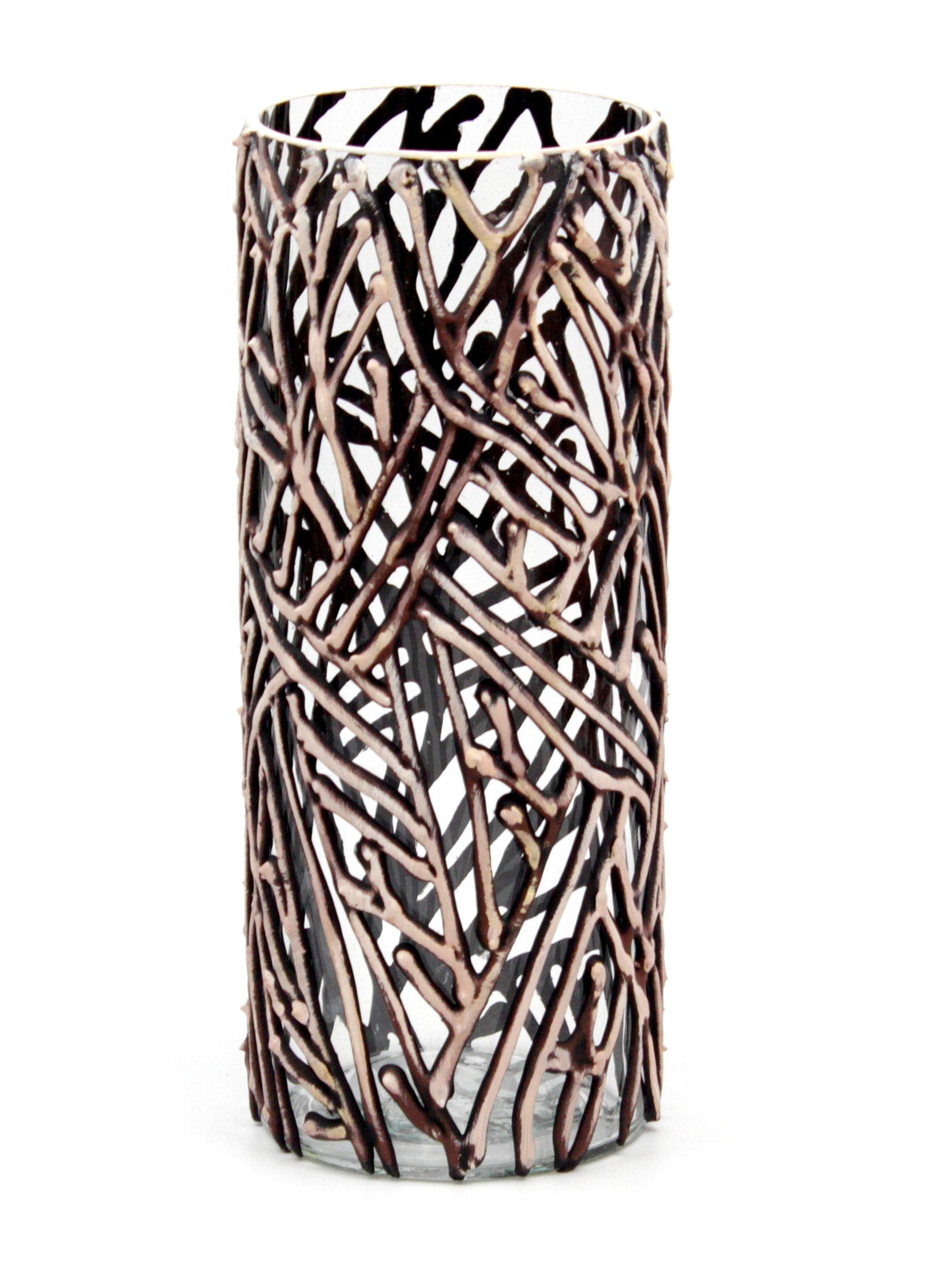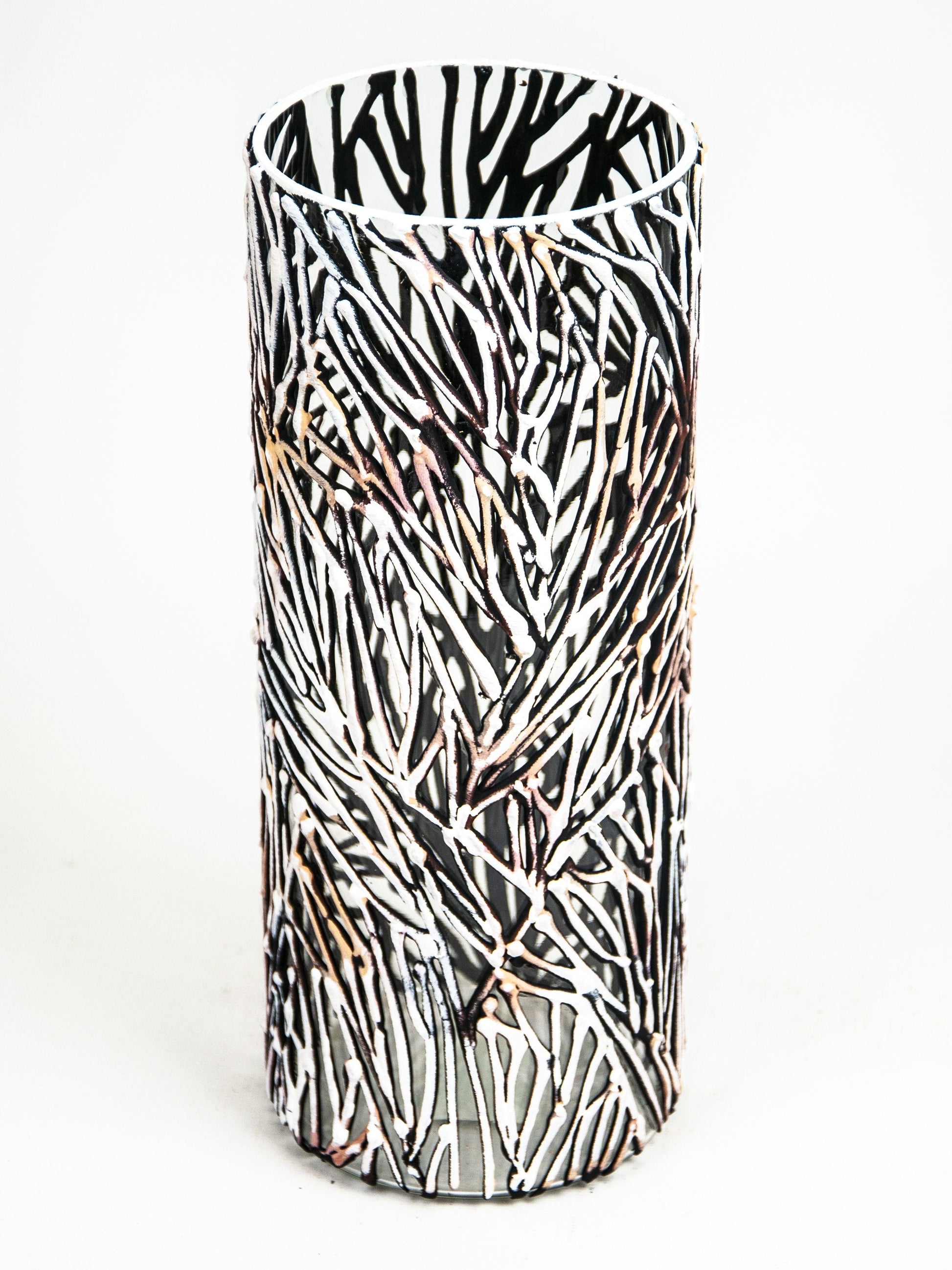 Handpainted Glass Vase for Flowers | Table Vase Art Branches Decorated Cylinder | Interior Design | Home Decor | 7017/300/sh144